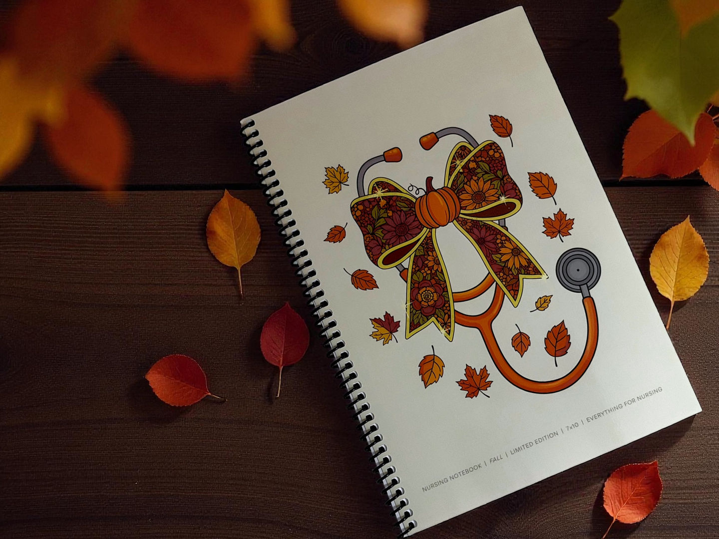 Limited edition nursing notebook, celebrating the fall season! Featuring a durable glossy cover with exclusive nursing artwork. Designed for taking notes, studying, and staying organized throughout your nursing journey.
