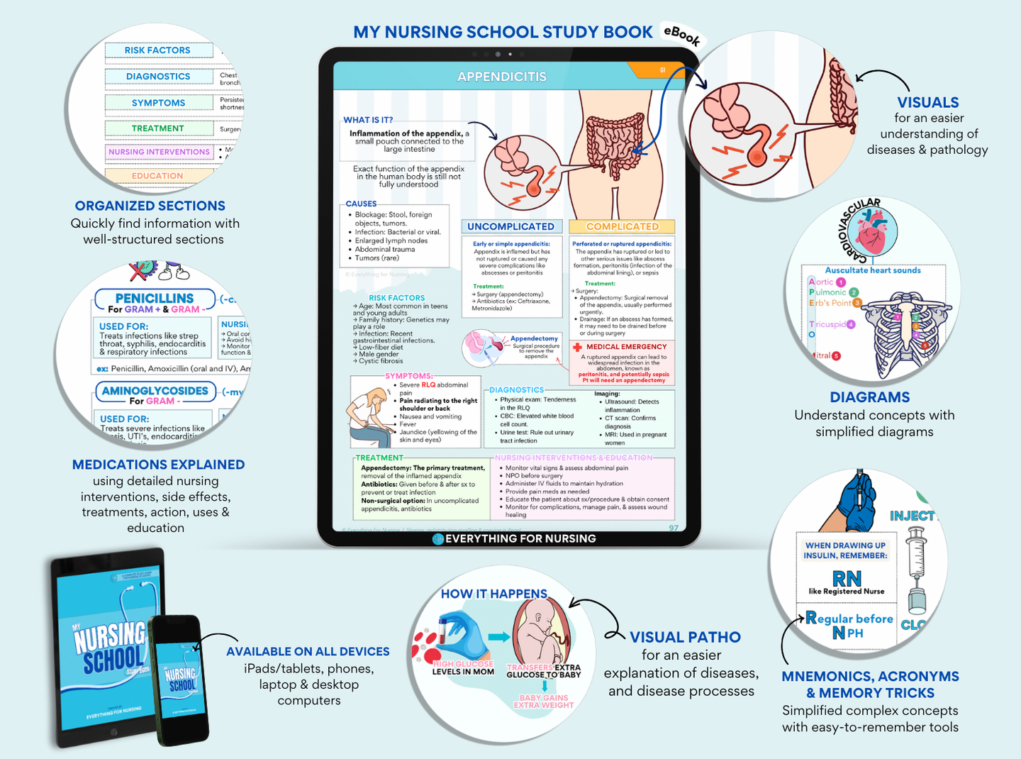Instant Download | My Nursing School Study Book - eBook - Over 200+ pages of vibrant, easy-to-digest content designed specifically to simplify nursing school concepts.
