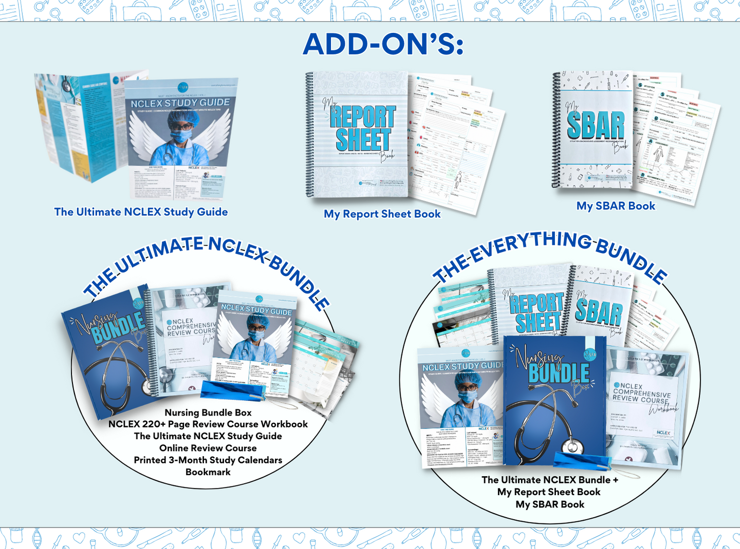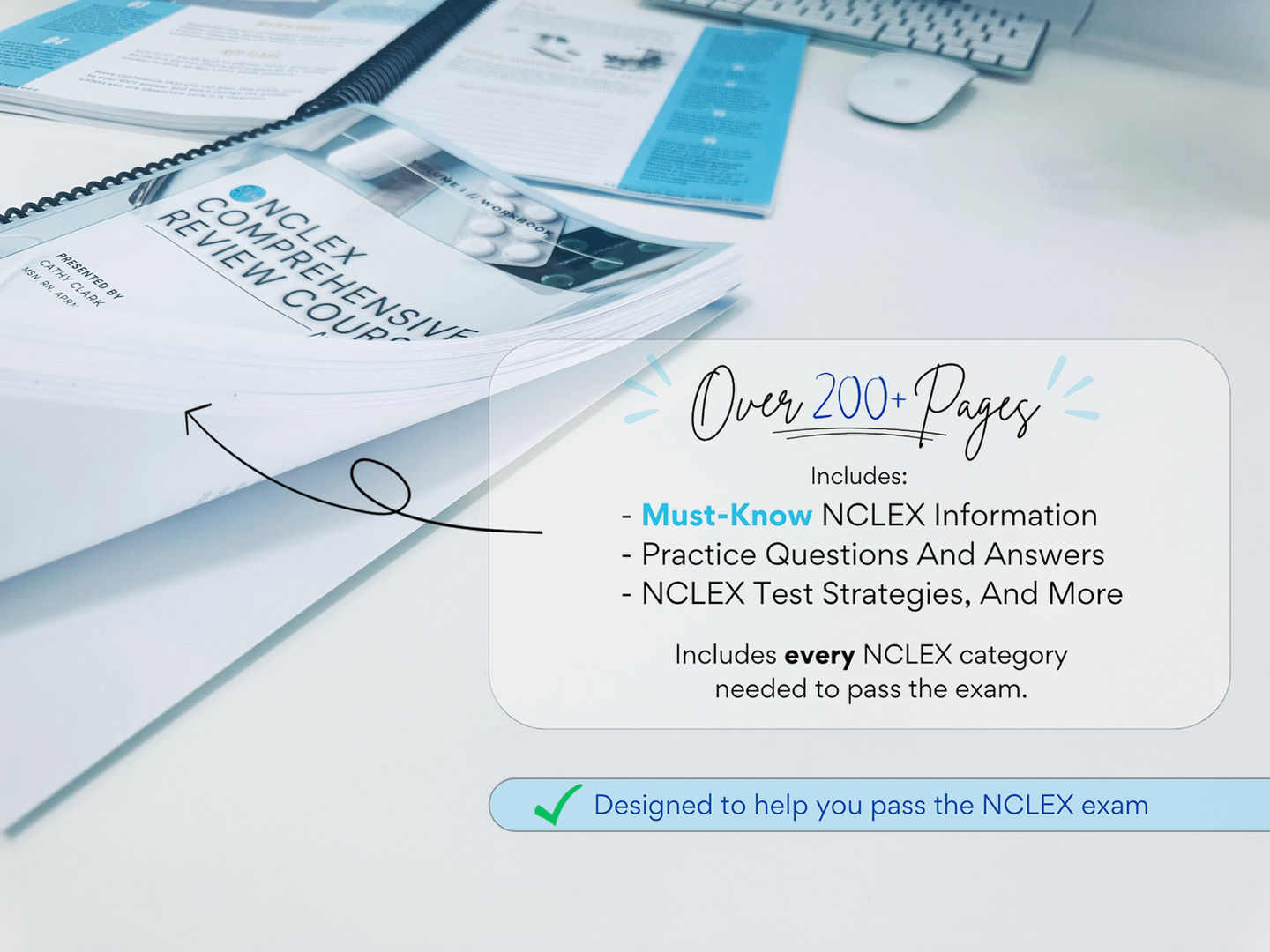 - Spiral Bound NCLEX® Workbook (over 220+ pages) shipped directly to you