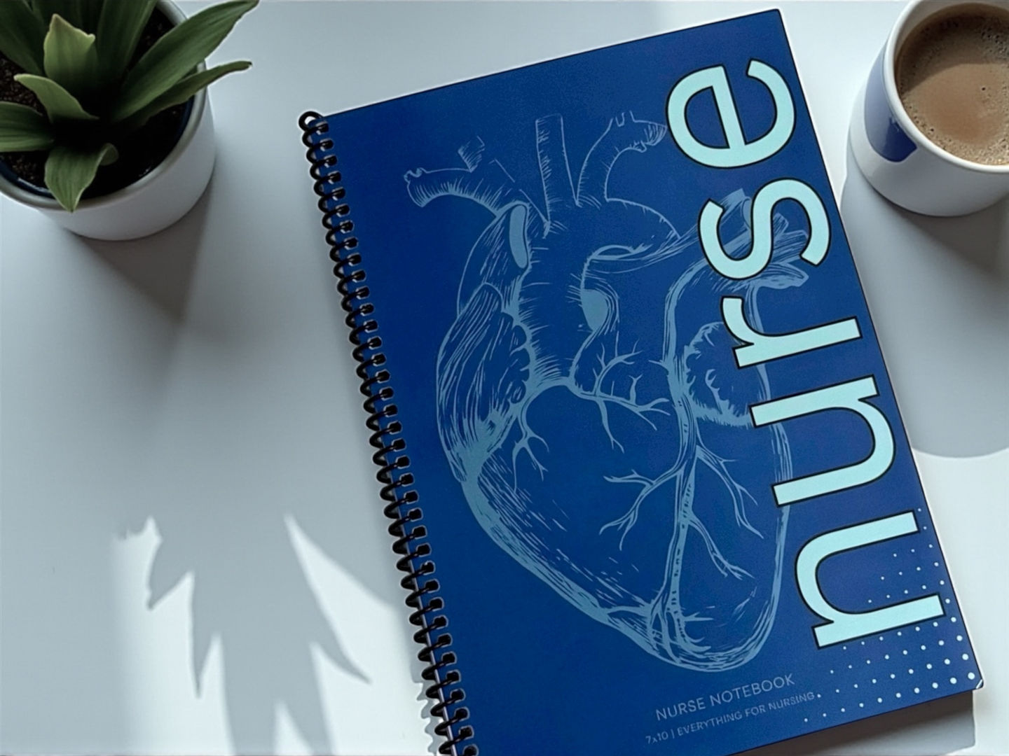 Nurse notebook featuring a durable glossy cover with exclusive nursing artwork. Designed for taking notes, studying, and staying organized throughout your nursing journey.